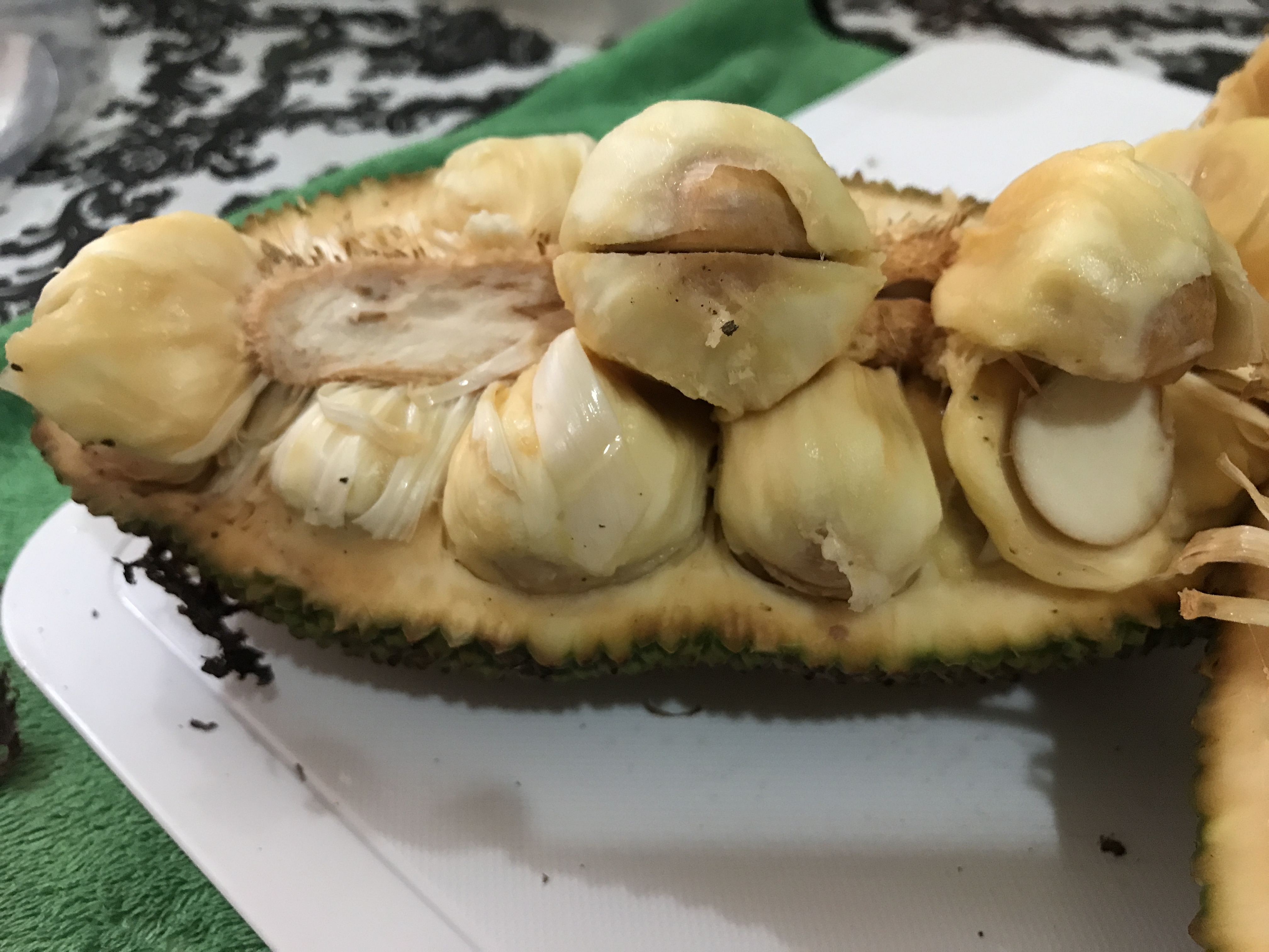 식감은 잭 프르트와 두리안을 섞어 놓은 거 같고 맛도 그런 맛이다. 식이섬유 엄청 많고. 잭 푸르트 처음 태국에서 먹고 이런 걸 왜 먹나 했는데 몇 달 전 싱가포르에서 잘 익은 달달한 잭 푸르트를 맛보고 좋아하게 됐고 그래서 주저 없이 쳄페닥을 구매했지.
